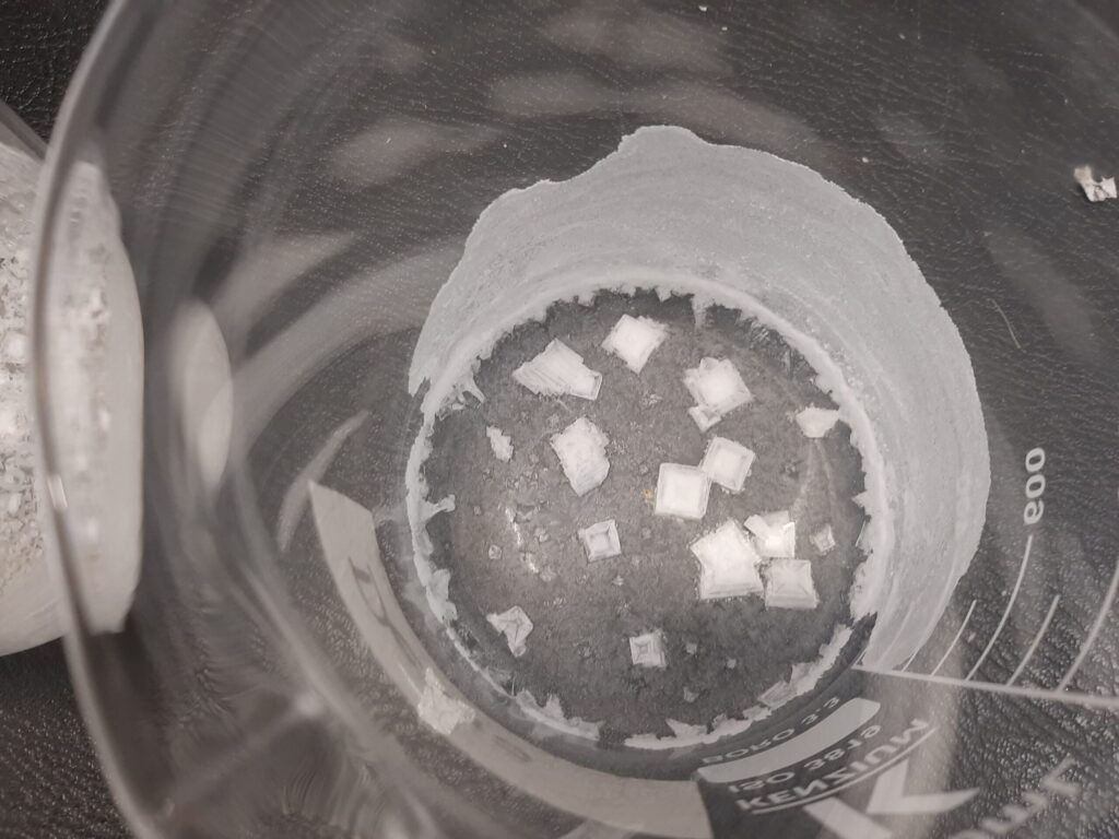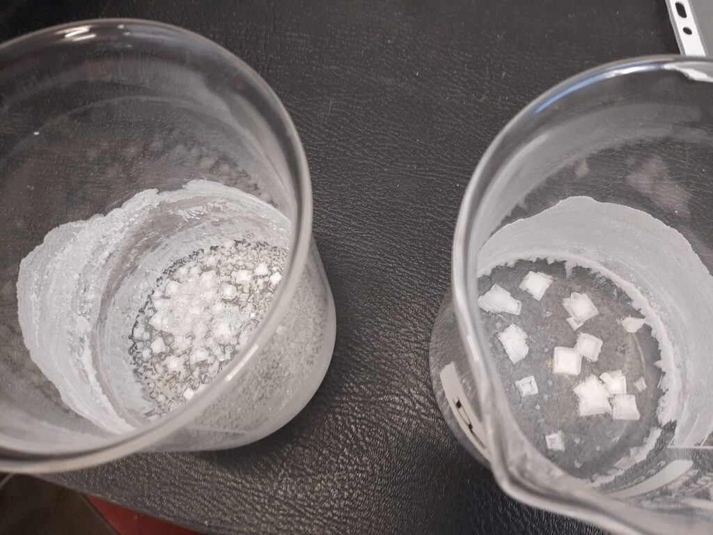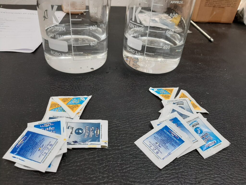 Abbiamo successivamente versato in ogni contenitore la stessa quantità di sale e miscelato il tutto.