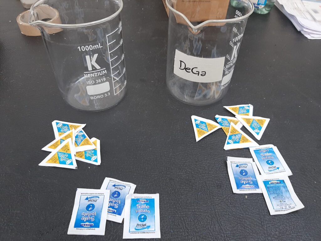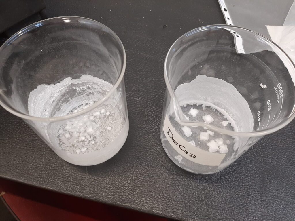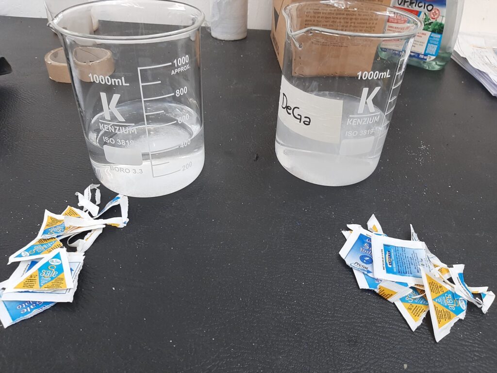 Abbiamo riempito i due contenitori in egual misura con dell’acqua di rete, in uno l’acqua è stata fatta passare prima in Dega1.